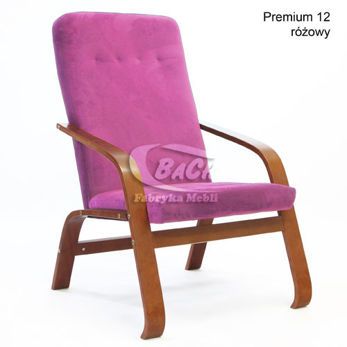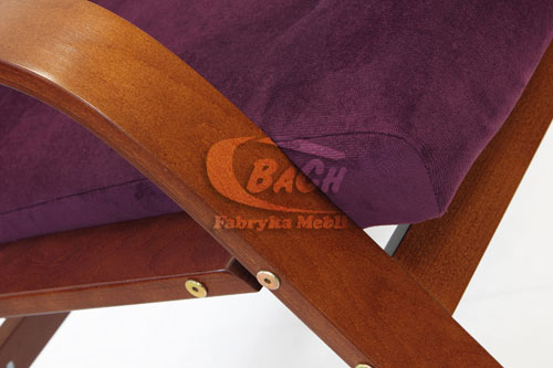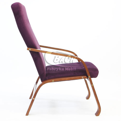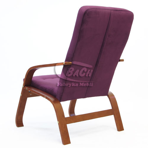 Dodatkowym atutem jest estetyka z jaką fotel dla seniora został wykonany. Prosta forma pozwala na wprowadzenie mebla do dowolnego wnętrza zarówno tego urządzonego w stylu klasycznej elegancji, jak i o nieco bardziej nowoczesnym designie. Doskonale sprawdza się połączenie naturalnego koloru drewna ze śliwkowym odcieniem tkaniny obiciowej, która zapewnia aksamitne uczucie w kontakcie z ciałem.