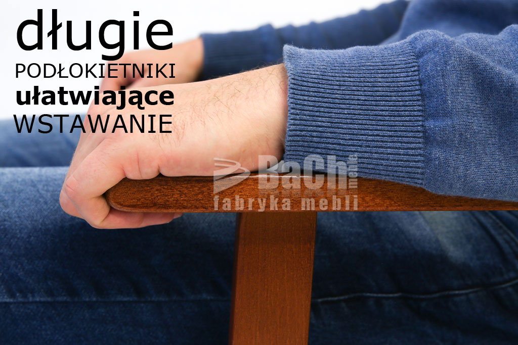 Podłokietniki są wydłużone, co znacznie poprawia wstawanie osobom starszym i schorowanym.
