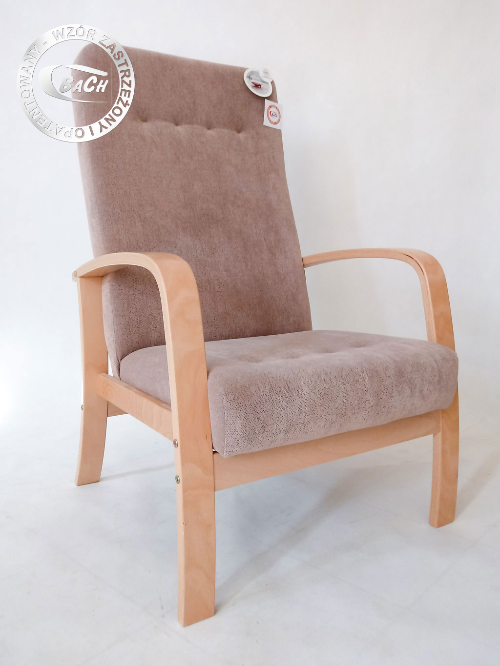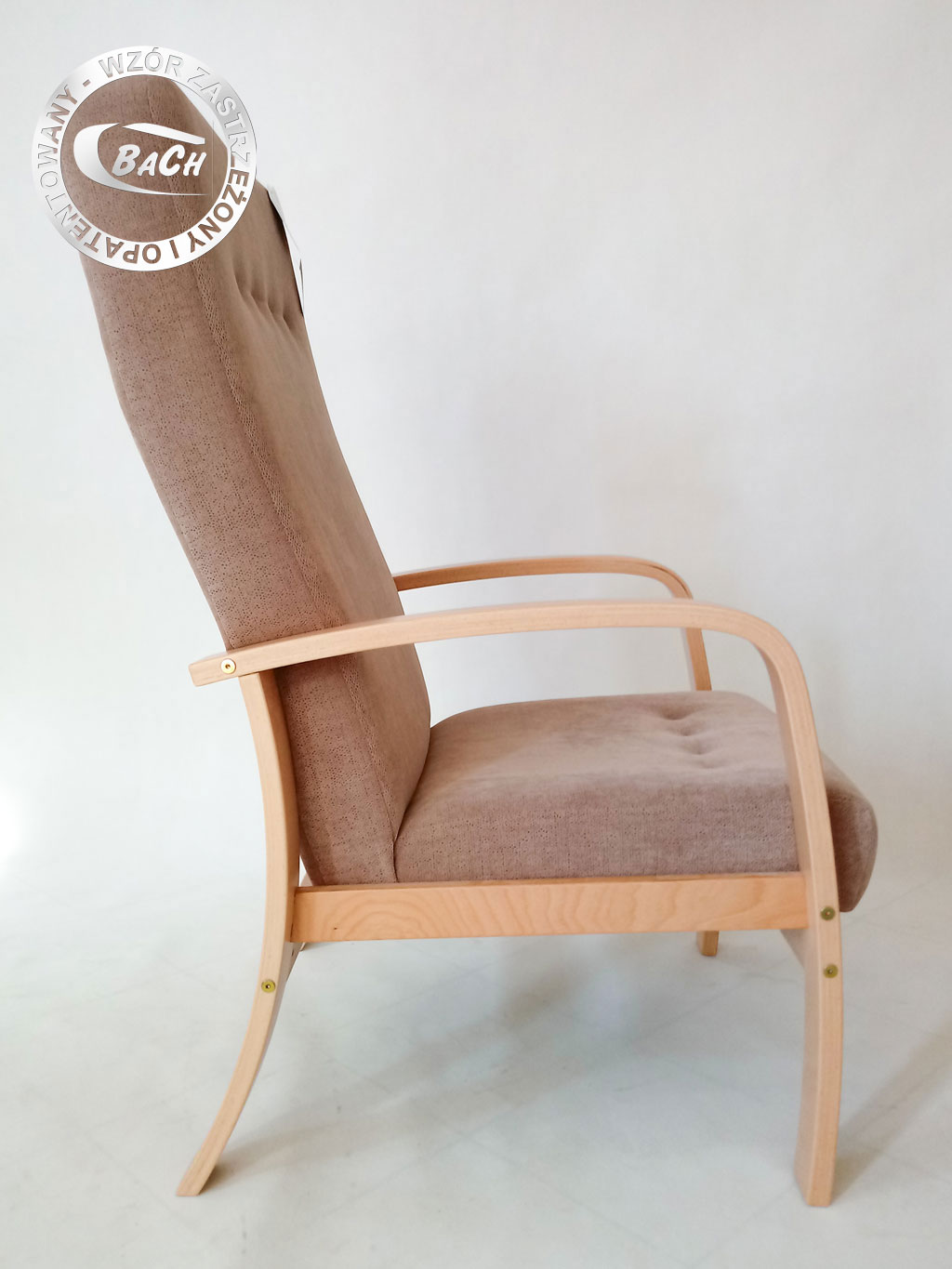 Stelaż wykonany z 16-warstwowej bukowej sklejki gięto-klejonej. Siedzisko fotela (ramka metalowa) z uwagi na zastosowanie opatentowanych rozwiązań montażowych stanowi integralną część ze stelażem gięto-klejonym i sprzedawana jest w komplecie ze stelażem.